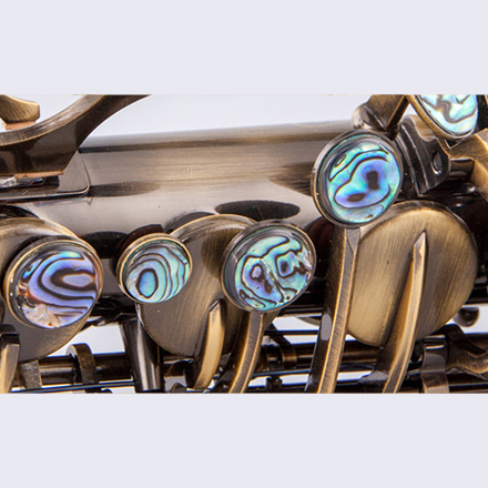 The saxophone is designed to deliver a smooth and rich tone. Thanks to its blued steel springs and domed metal reflectors, the saxophone offers a bright and responsive sound that enhances your playing experience. Precision-drawn tone holes allow for optimal air flow and consistent sound across all registers. The antique finish not only adds to its aesthetic appeal but also contributes to its robust tonal characteristics.
